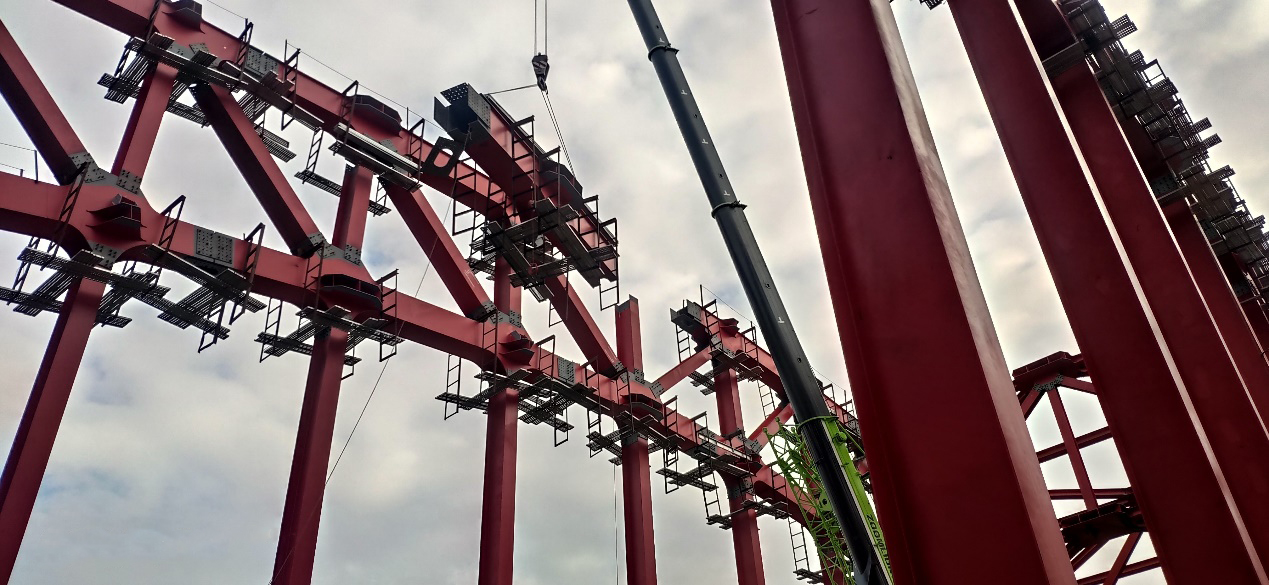 ? ? ? ?上午10時(shí)許,伴隨著起吊信號(hào)指令的發(fā)出,主拱合龍弦桿順勢(shì)吊起,在各方單位領(lǐng)導(dǎo)的共同見(jiàn)證下,歷時(shí)1個(gè)多小時(shí)的主拱合龍段的安裝工作順利完成,標(biāo)志著合肥集賢路跨派河橋主拱正式合龍。合肥市重點(diǎn)工程建設(shè)管理局相關(guān)領(lǐng)導(dǎo)、安徽省公路橋梁工程有限公司集賢路項(xiàng)目部相關(guān)領(lǐng)導(dǎo)、安徽省公路工程建設(shè)監(jiān)理有限責(zé)任公司相關(guān)領(lǐng)導(dǎo)及海波重科合肥集賢路項(xiàng)目部全體人員等共同見(jiàn)證了集賢路跨派河橋成功合龍。