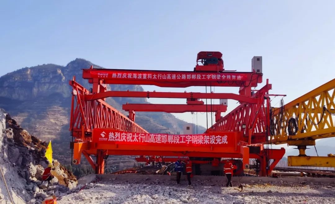 (海波重科新聞報道)2019年11月19日,由海波重科承接的太行山高速公路邯鄲段工字鋼梁全線貫通。甲方華川集團黨委書記、董事長、總裁謝應文、總工程師曾昭明、華北片區指揮長陳杰、項目經理牟世輝、海波重科總經理劉乾俊、項目執行經理趙占云、項目總工甘泉等領導共同見證這一振奮人心的時刻。