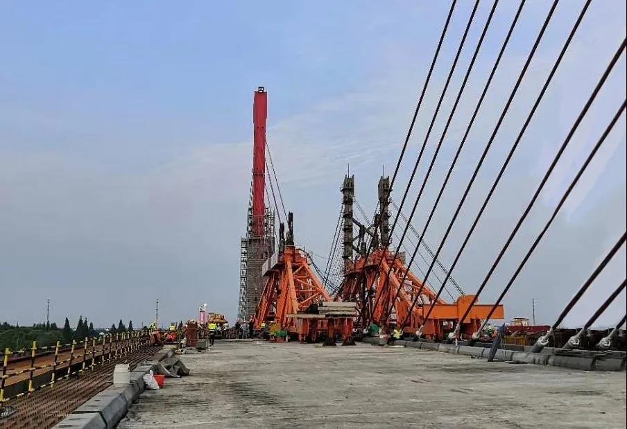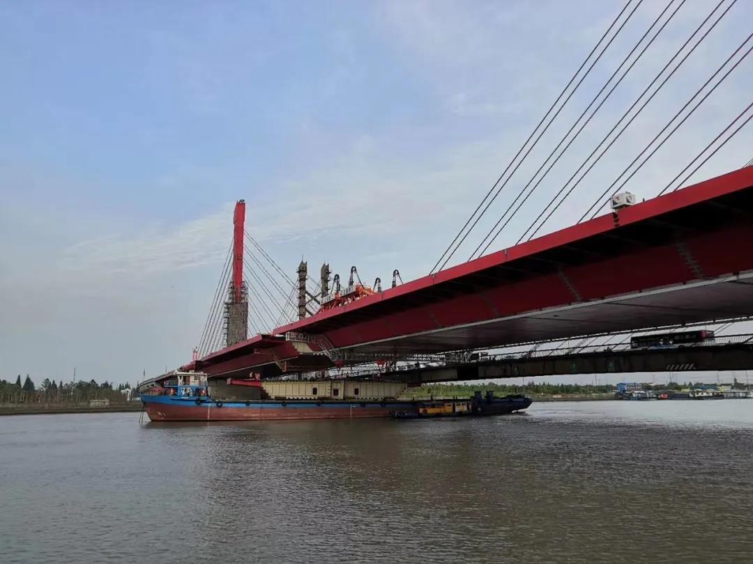 上海泖港項(xiàng)目部還通過多種創(chuàng)新技術(shù)及方案,賦予主橋諸多新的“閃光點(diǎn)”:通過采用球鋼支座和疊層橡膠支座的支承體系,大幅提升了塔梁固接體系斜拉橋的抗震性能;鋼主梁兩側(cè)設(shè)置后拼裝挑臂,通過時(shí)間和空間的錯(cuò)位實(shí)施,巧妙地增加了橋梁的安全距離,減小了相互干擾。泖港大橋改建完成后,大橋距離水面高度將完全滿足IV級(jí)航道的通航需要,提升航道運(yùn)輸能力,使整個(gè)平申線航道成為浙滬之間的一條水上高速通道,對(duì)支撐上海市國(guó)際航運(yùn)中心建設(shè)、改善黃浦江上游地區(qū)交通條件、環(huán)境質(zhì)量和防洪除澇能力具有重要作用。