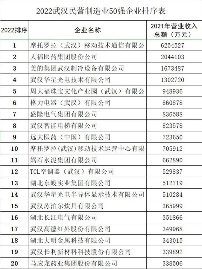 該排序榜由相關市直部門共同組織,在尊重企業(yè)自主申報原則的基礎上,以2021年企業(yè)營業(yè)收入總額為依據(jù),由武漢市工商聯(lián)完成。