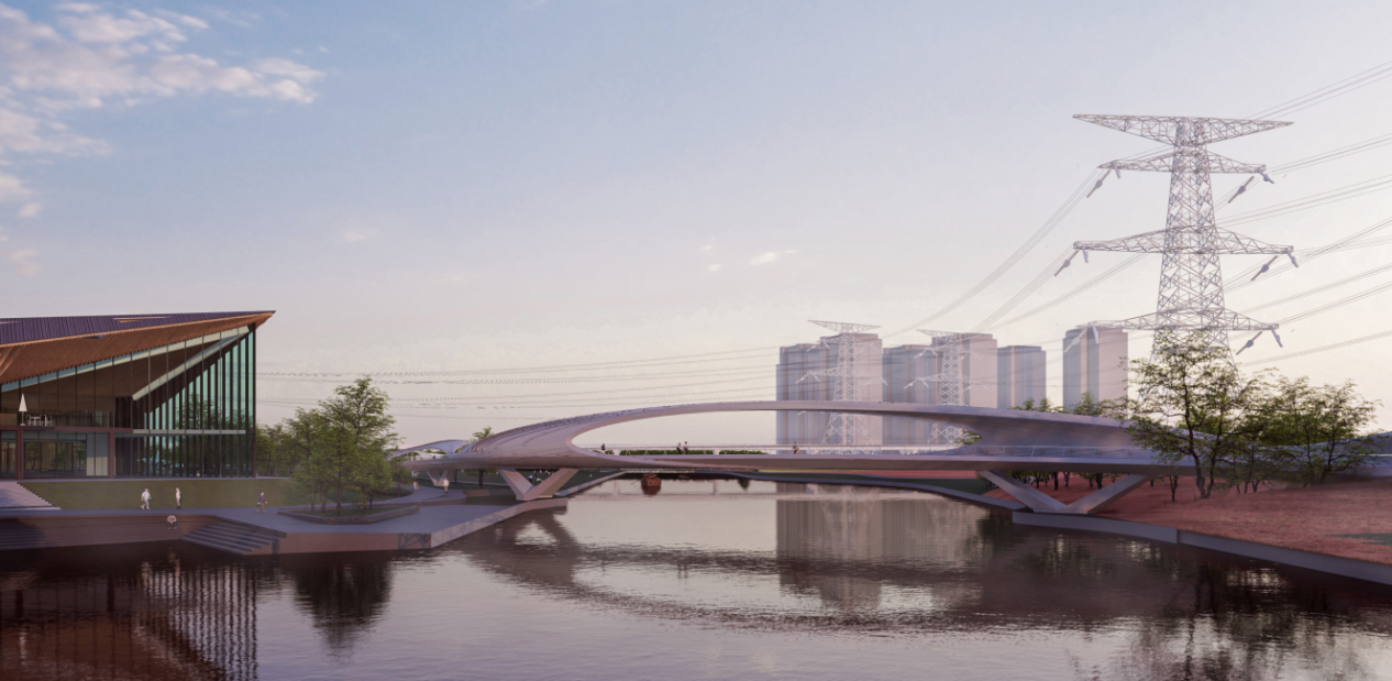 鳳鳴橋項目位于新吳區伯瀆河公園東側,伯瀆河公園蜿蜒長達 3.7 公里,坐擁便利的地鐵交通(開發中)和豐富的景觀及人文資源,是城市級濱水公共空間。